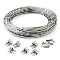 SET: Edelstahl Drahtseil 3mm 7x19 20m, Drahtseilklemme Bügel 6 Stk., Kausche 2 Stk.